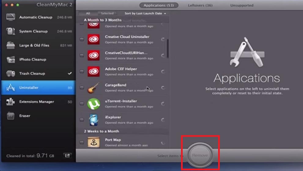 Xóa áp dụng sạch sẽ với CleanMyMac